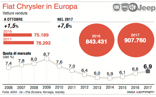 TORINO. Il mercato dell'auto europeo torna a crescere dopo il calo del 2 per cento di settembre: le immatricolazioni nel mese di ottobre nei ventotto Paesi dell’Unione europea (Ue) più Efta - secondo i dati dell'Acea, l'associazione dei costruttori europei - sono state 1.207.982, il 5,9 per cento in più dello stesso mese del 2016. Nei dieci mesi del 2017 sono state vendute 13.234.599 auto (+3,8 per cento). Secondo il presidente del Centro Studi Promotor, Gian Primo (dati %) Quagliano, "ipotizzando che il tasso di sviluppo dei primi dieci mesi si mantenga invariato a novembre e dicembre, le immatricolazioni a fine anno toccheranno quota 15.213.000. Un livello ancora lievemente inferiore (-2,32%) al 2007, prima della crisi economica". Cresce anche il gruppo Fiat Chrysler Automobiles (Fca) che ha venduto 76.292 auto a ottobre, l'1,5 per cento in più dello stesso mese 2016, con la quota che scende dal 6,6 al 6,3% e 907.760 nei dieci mesi, pari a un incremento del 7,6 per cento, il doppio di quello del mercato. La quota del periodo sale al 6,9% a fronte del 6,6%. Tra i brand cresce Alfa Romeo che registra, con Giulia e Stelvio, un balzo del 20,3 per cento a ottobre e del 34,4% da inizio anno. Crescono anche Jeep (+20,4% e +0,3%) e Fiat (+7,5% nei dieci mesi). Volkswagen, che con una quota di mercato pari a circa un quarto del totale cresce ad ottobre del 4,7% e del 2,4 per cento nel periodo, punta sull'elettrico in Cina. La casa di Wolfsburg annuncia investimenti entro il 2025 su- periori a 10 miliardi di euro con diversi partner cinesi per sviluppare e lanciare una serie di autoelettriche. La produzione, attraverso una partnership con Jian- ghuai Automobile Group, inizierà già nella prima metà del prossimo anno, le vendite nella seconda parte del 2018. In Europa tutti i mercati nazionali sono in crescita tranne quelli di Finlandia, Regno Unito e Ir- landa. Gli incrementi maggiori sono di Spagna (+13,7%), Fran- cia (+13,7%) e Italia (+7,1%), mentre il Regno Unito registra un calo del 12,2%. La domanda negli Stati nuovi membri Ue è cresciuta del 20,1 per cento il mese scorso e ha dato un contributo significativo alla performance del mercato europeo. L'Anfia sottolinea che "già nel secondo trimestre, la quota di veicoli diesel venduti in Europa ha mostrato un calo significativo in alcuni dei principali mercati come Germania, Regno Unito e Francia".